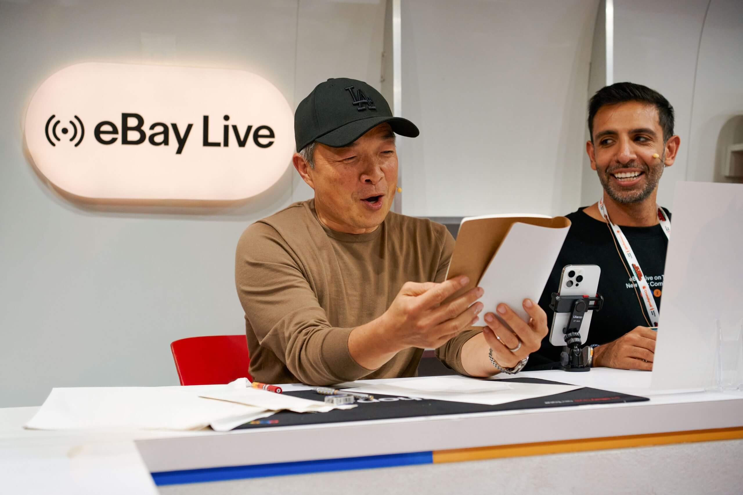 Jim Lee checks out the work from a participant in his drawing tutorial. (Photo: eBay)