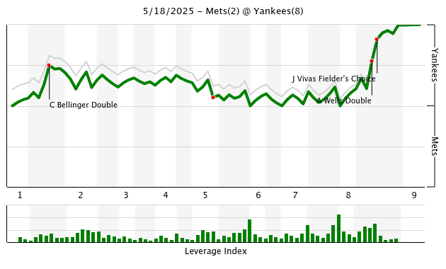 Devin Williams was next on the mound for the Yankees and he made short work of Soto, Alonso, and Vientos. Ryne Stanek pitched the bottom of the eighth for the Mets, and led off the inning by walking Jasson Dominguez. Stanek then fanned D.J. LeMahieu for the first out.