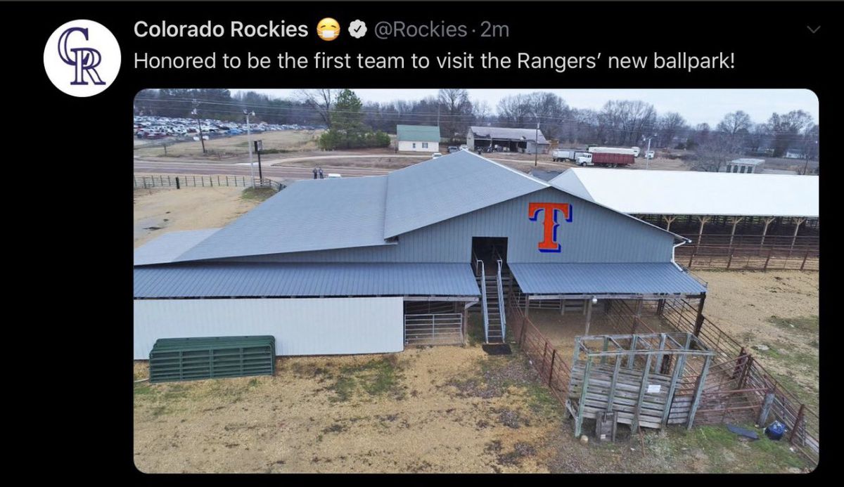 In a deleted tweet, the Rockies make fun of Globe Life Stadium’s roof (2020).