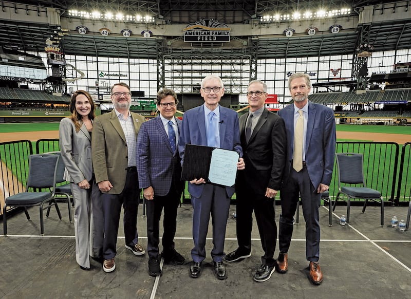 Attanasio stands next to Wisconsin Gov. Tony Evers (center) after a stadium funding package with the state was signed in 2023. Scott Paulus/Milwaukee Brewers Undervalued assets