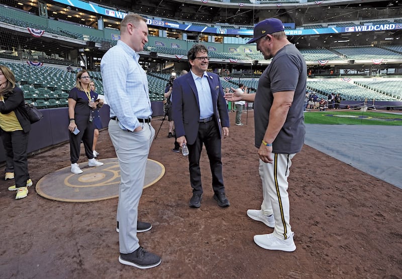 He visits Milwaukee twice a month on average throughout the year and has regularly scheduled monthly and quarterly meetings with leaders on the business side, “as you would in any business,” Attanasio said. He works closely with the baseball operations side in person, by Zoom, by text or email, “whatever the situation calls for,” he said.