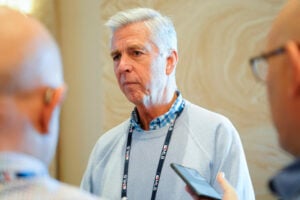Nov 9, 2022; Las Vegas, NV, USA; Philadelphia Phillies president of baseball operations Dave Dombrowski answers questions from the media during the MLB GM Meetings at The Conrad Las Vegas. Mandatory Credit: Lucas Peltier-USA TODAY Sports