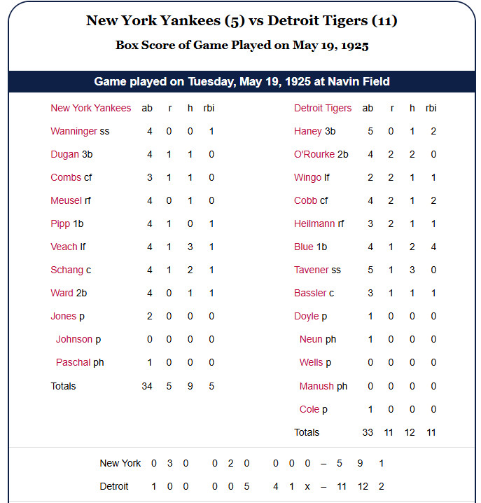 So why exactly are we diving into the archives to look at this squad today? Because, much like the game that the Yankees would win on the road in Cleveland 25 years ago (featured today in our 2000 Yankees Diary), the 1925 club found themselves mired in a crazy game a century ago — although unfortunately for them, they would come out on the losing side.