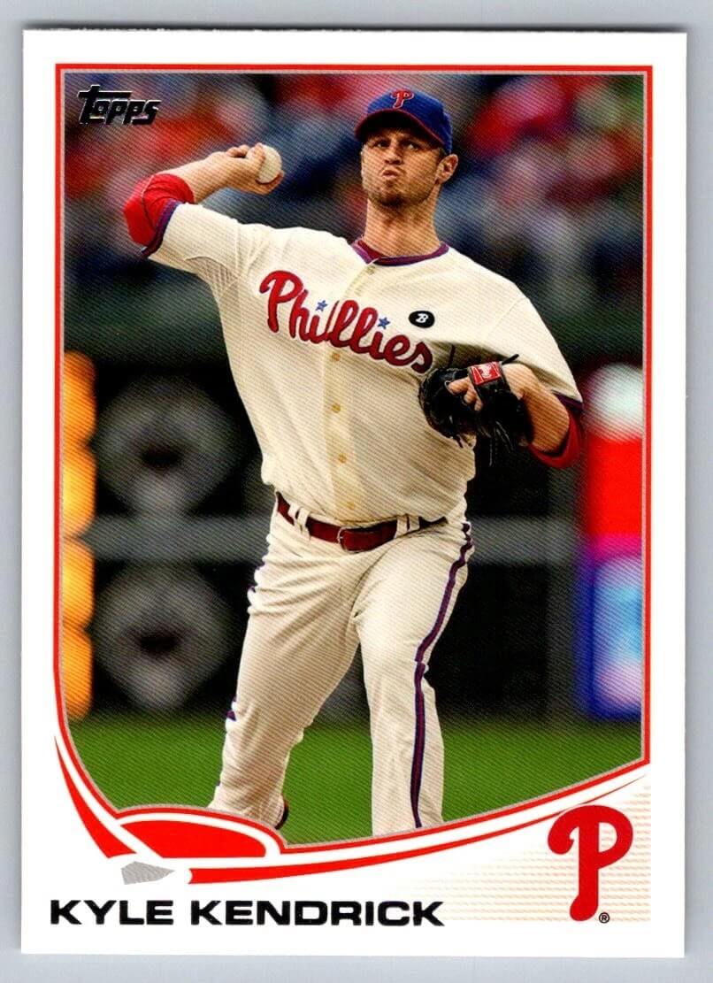 In 2013, the Phillies were not impressive. They would finish fourth in the NL East with a 73-89 record, and Kendrick’s base card in that year’s Topps set was equally unremarkable. It looked like this…
