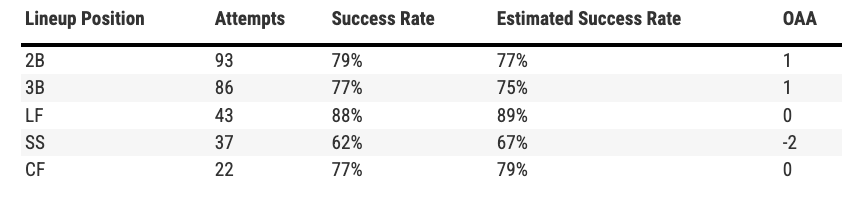 Aside from the -2 DRS at the shortstop position, where he spent the second-least amount of time, Sanoja provided steady defense for the Marlins consistently. As a matter of fact, he did not have a success rate less than 75% at any other position but shortstop.