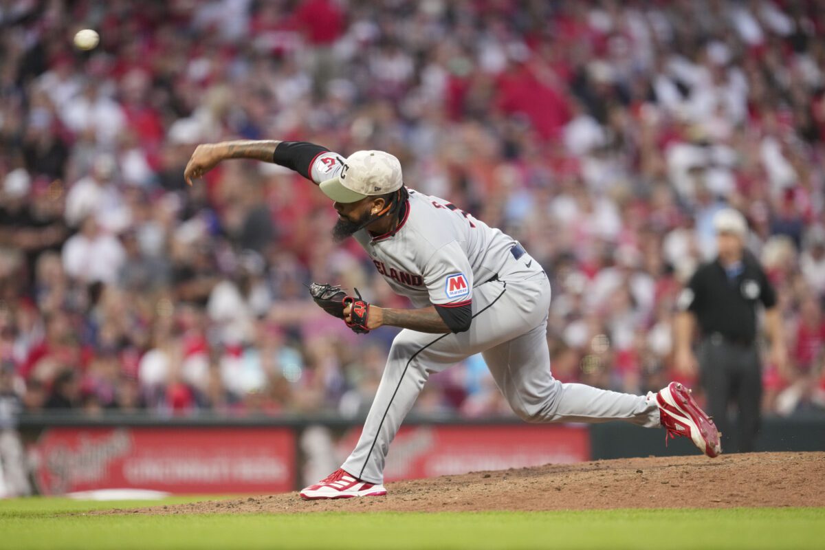 Photo: Cleveland Guardians pitcher Emmanuel Clase throws during a baseball game against the Cincinnati Reds, Saturday, May 17, 2025, in Cincinnati. (AP Photo/Jeff Dean)
