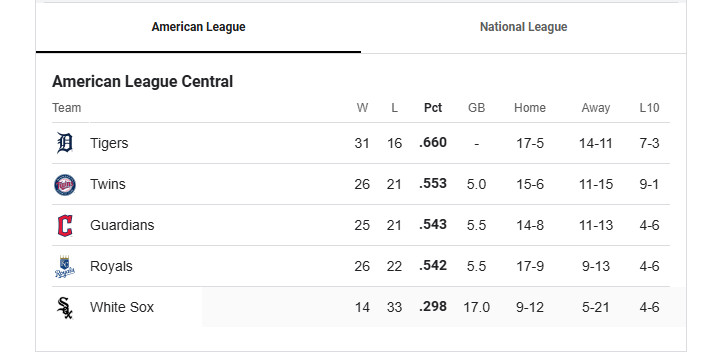 The Minnesota Twins are 5 GB in the AL Central after a 13-game winning streak was snapped with a 5-2 loss the the Brew Crew on Sunday. The Twins (26-21) look to bounce at home Monday against the Guardians (25-21.)