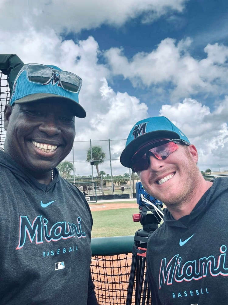 Carlton (photo, with catcher’s mitt) will continue his steady rise through the Marlins organization in 2026 as the Minor League Pitching Coordinator.