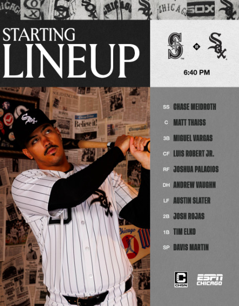 In today’s series preview, Ryan wrote that this series “won’t be a breeze” thanks to Chicago’s solid run differential at home despite their eye-bleachingly bad record. That remains true, but there will be a breeze in the air today. The White Sox, reeling from a sweep at the hands of the Cubs, will look to get right against the Mariners, and will have the help of newly-returned outfielder Austin Slater to do so, along with reigning AL Player of the Week, Miguel Vargas. Vargas batted .417/.423/1.000 with two doubles, four home runs, nine RBI and five runs scored over his past six games.