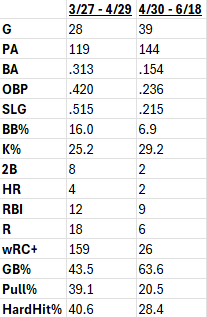 From that point forward, Campbell had a slugging percentage of just .215. He couldn’t pull the ball, he didn’t hit the ball hard, and every metric at the plate cratered.