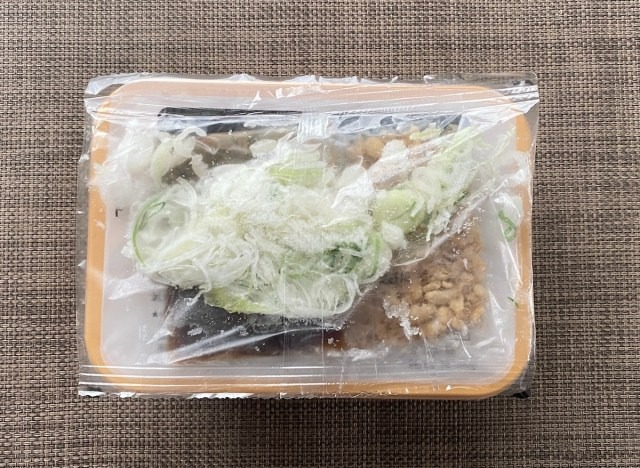 He opened the package and found a tray of the takoyaki balls, some sauce, seasoned squid tempura flakes, and green onions. All he had to do was heat the balls up in a microwave and then throw all the toppings on. It only took about five minutes in total.