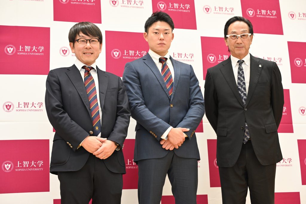This marks the first time in Sophia University’s history that a current student has been drafted by a professional baseball team, as the university does not have an athletic scholarship program. The following day, on October 24, Masaki attended a press conference at the Yotsuya Campus, where he shared his thoughts on being drafted and his aspirations for the future.