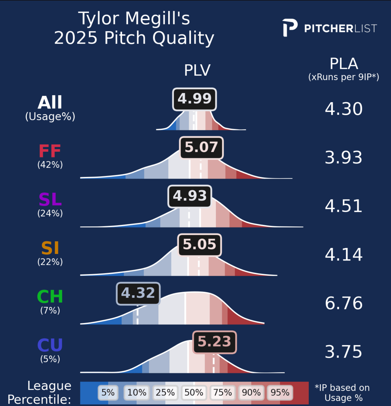 Despite having pretty dominant stuff at times, Tylor Megill has not been pretty this season, at least according to PLA.