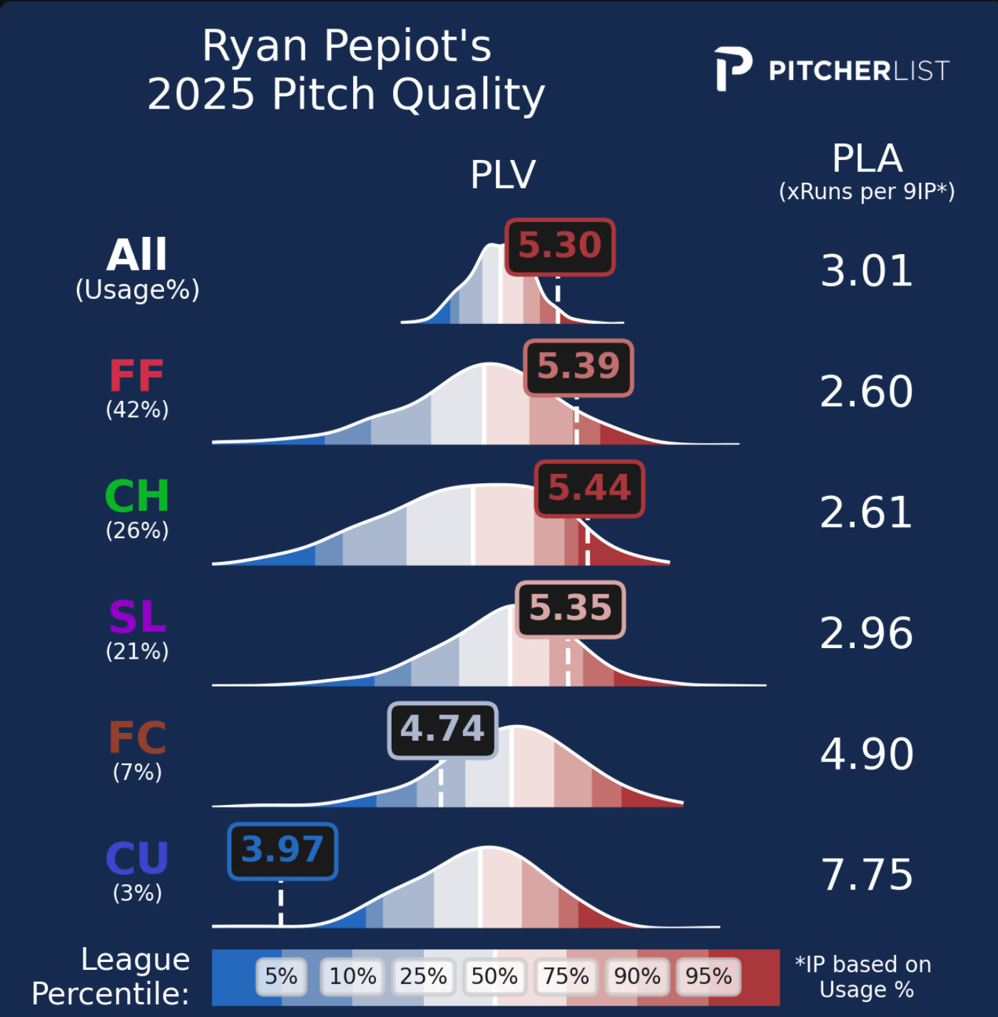 Ryan Pepiot is perhaps the poster child for PLA. If you love the stat, you love what he brings on the mound, even if the regular results haven’t been amazing.