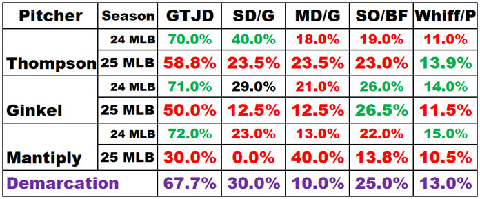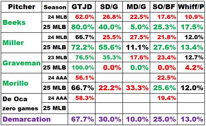 The following table shows the ‘new’ pitchers. They are compared with the same measures that were used in this January comparison.