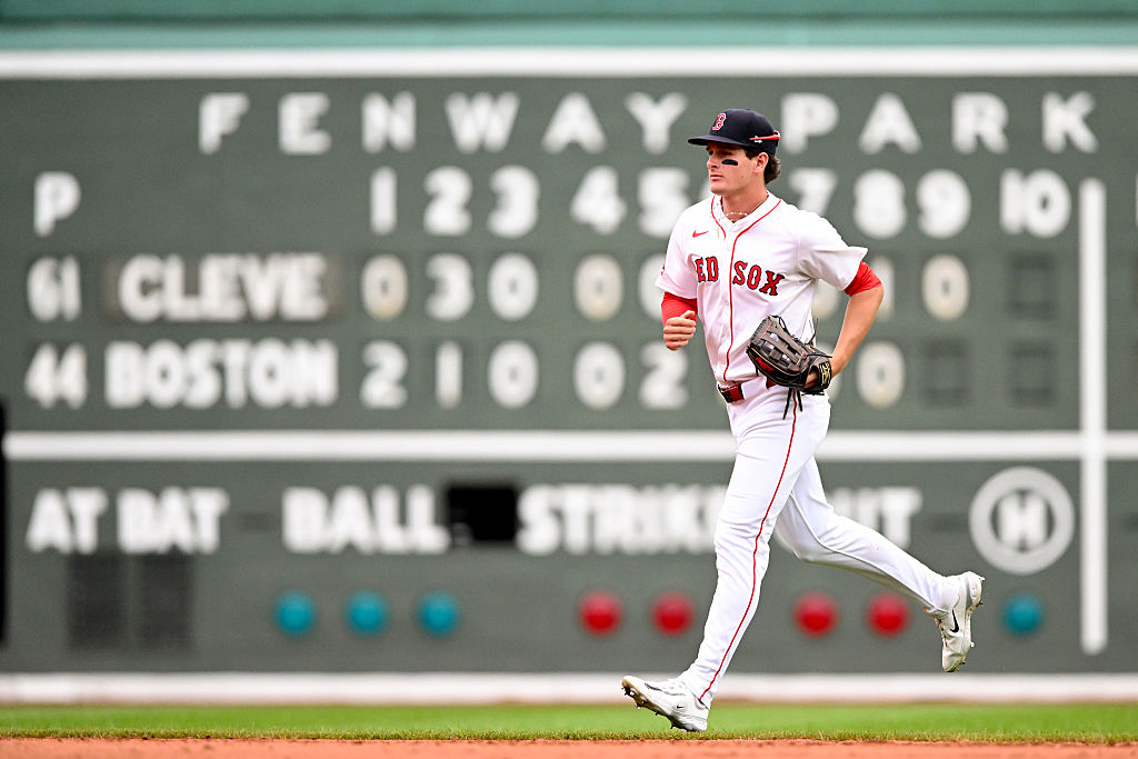BOSTON, MASSACHUSETTS – SEPTEMBER 01: Roman Anthony #19 of the Boston Red Sox runs off of the field after a game against the Cleveland Guardians at Fenway Park on September 01, 2025 in Boston, Massachusetts. (Photo by Brian Fluharty/Getty Images)
