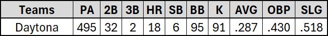 What he needs to work on: Lewis hit well in both the complex league and in Daytona, but in his 35 games with the Tortugas he struck out 35% of the time. That’s going to have to improve moving forward.