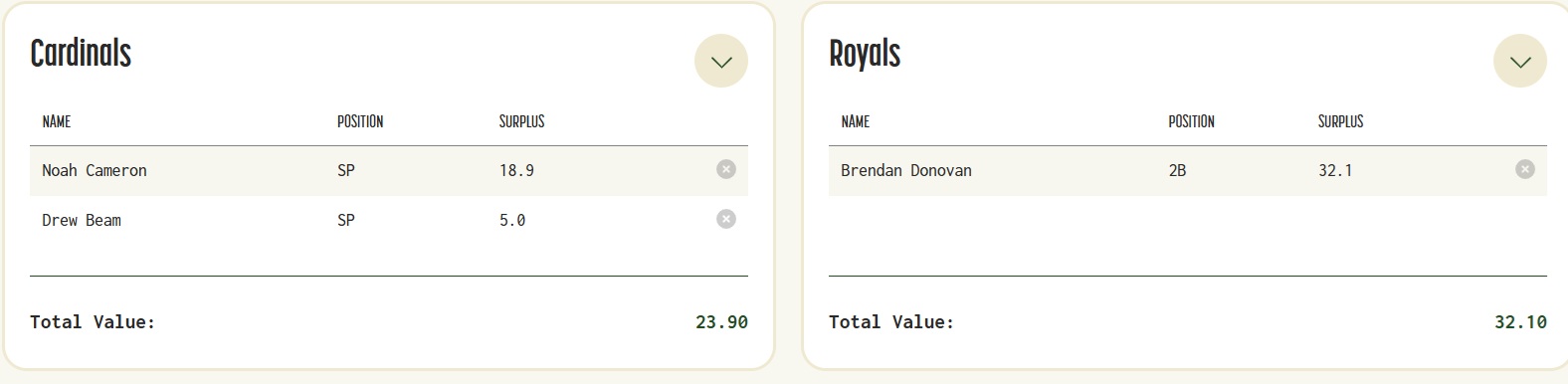 Proposal: Royals acquire infielder Brendan Donovan for pitchers Noah Cameron and Drew Beam