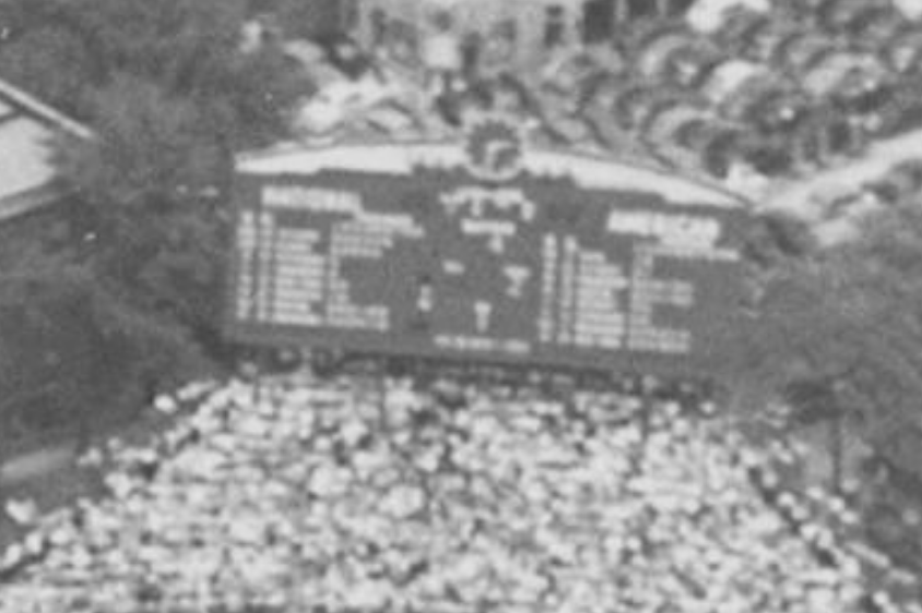 Well, that’s pretty blurry, but he figured it out. First of all, remember that the Cubs and White Sox lines were on the top of the board in those days. We are in the top of the sixth inning, No. 4 is at bat for the visiting team, there’s one out and there are two strikes and runs have already been scored in the inning.