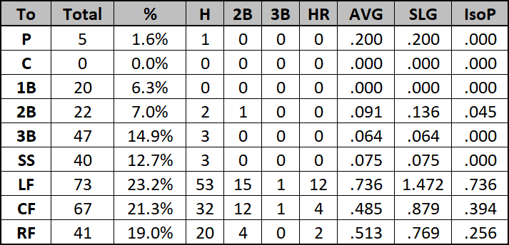 When in a zero ball count (0-0, 1-0, 2-0, or 3-0) he hit .446/.548/.819 (104 plate appearances).