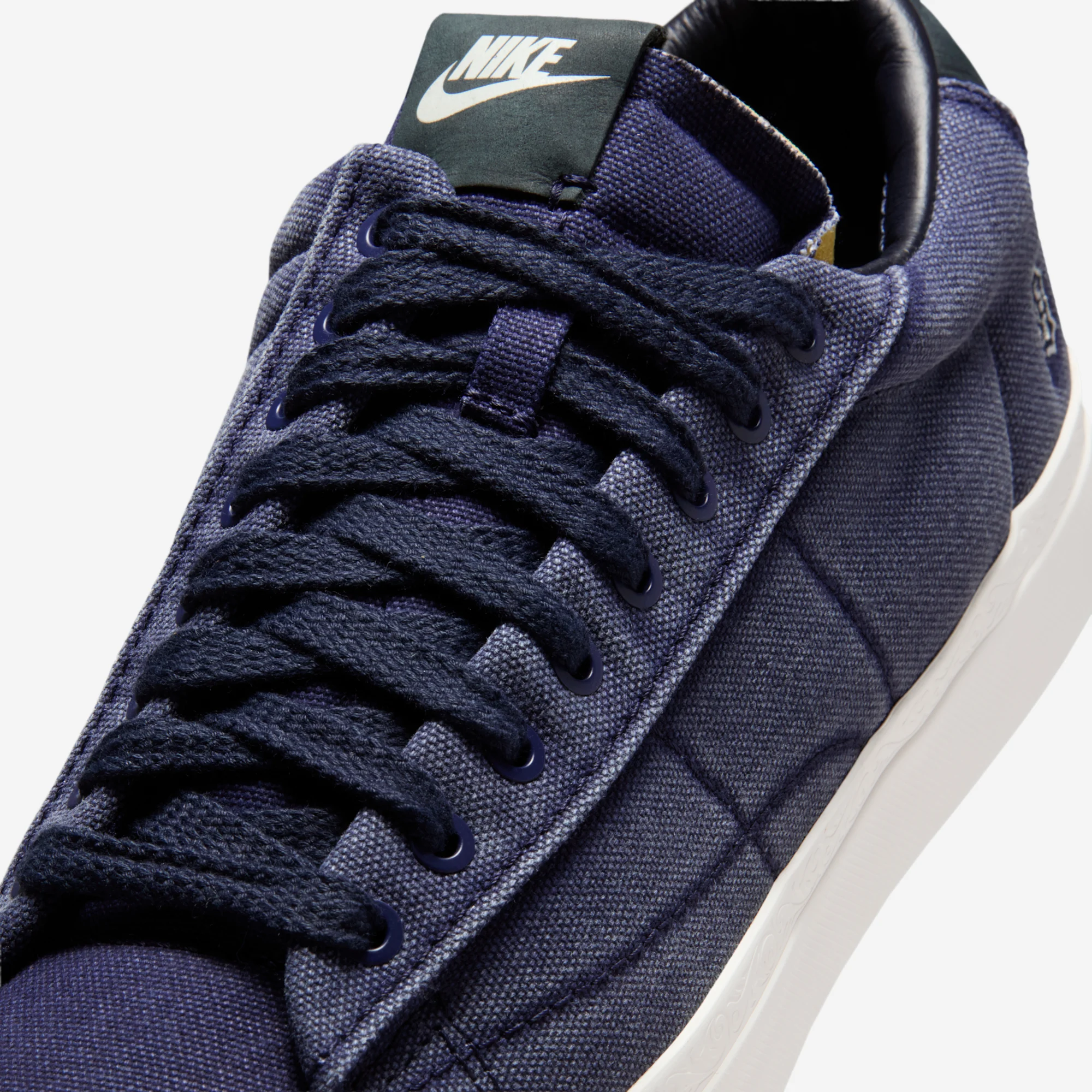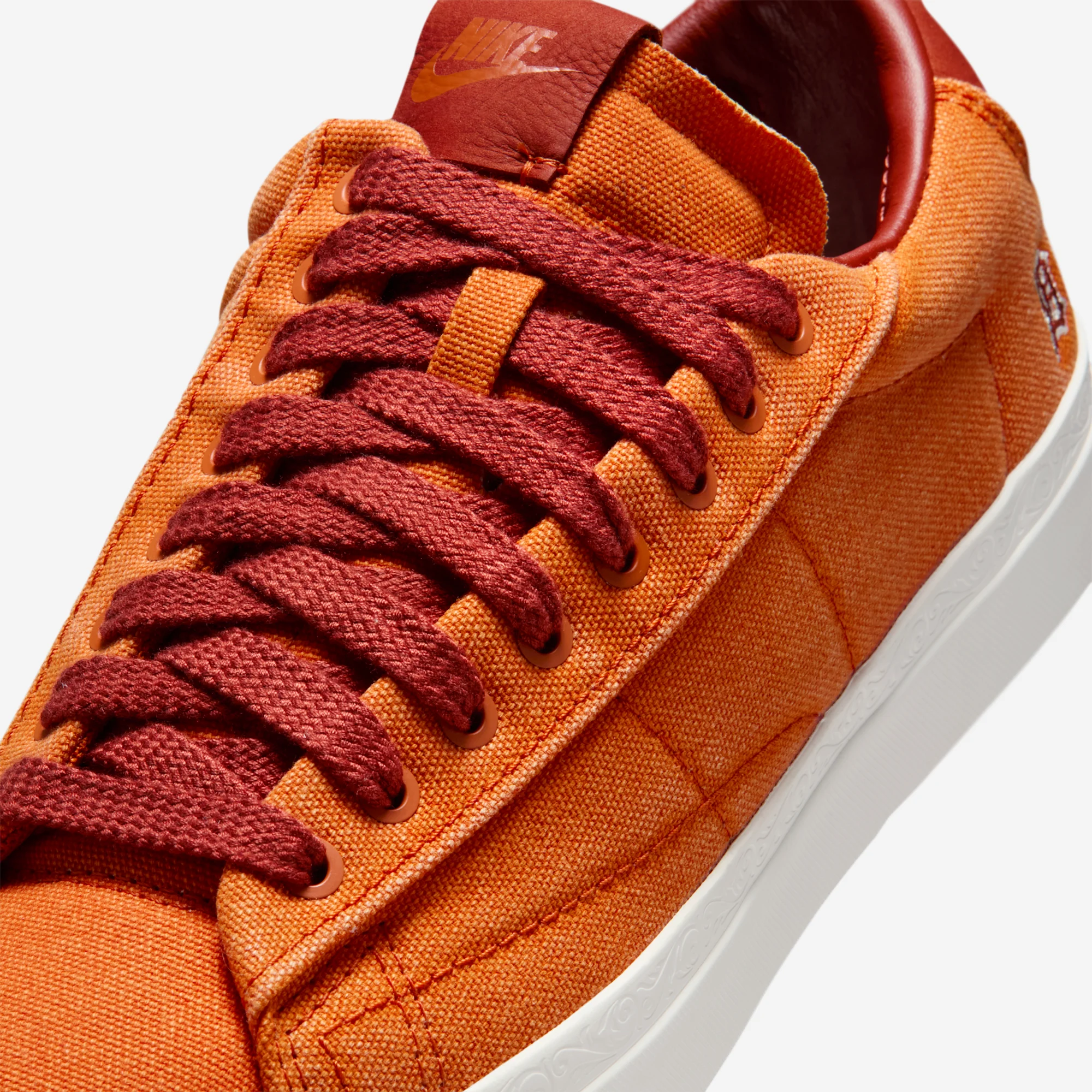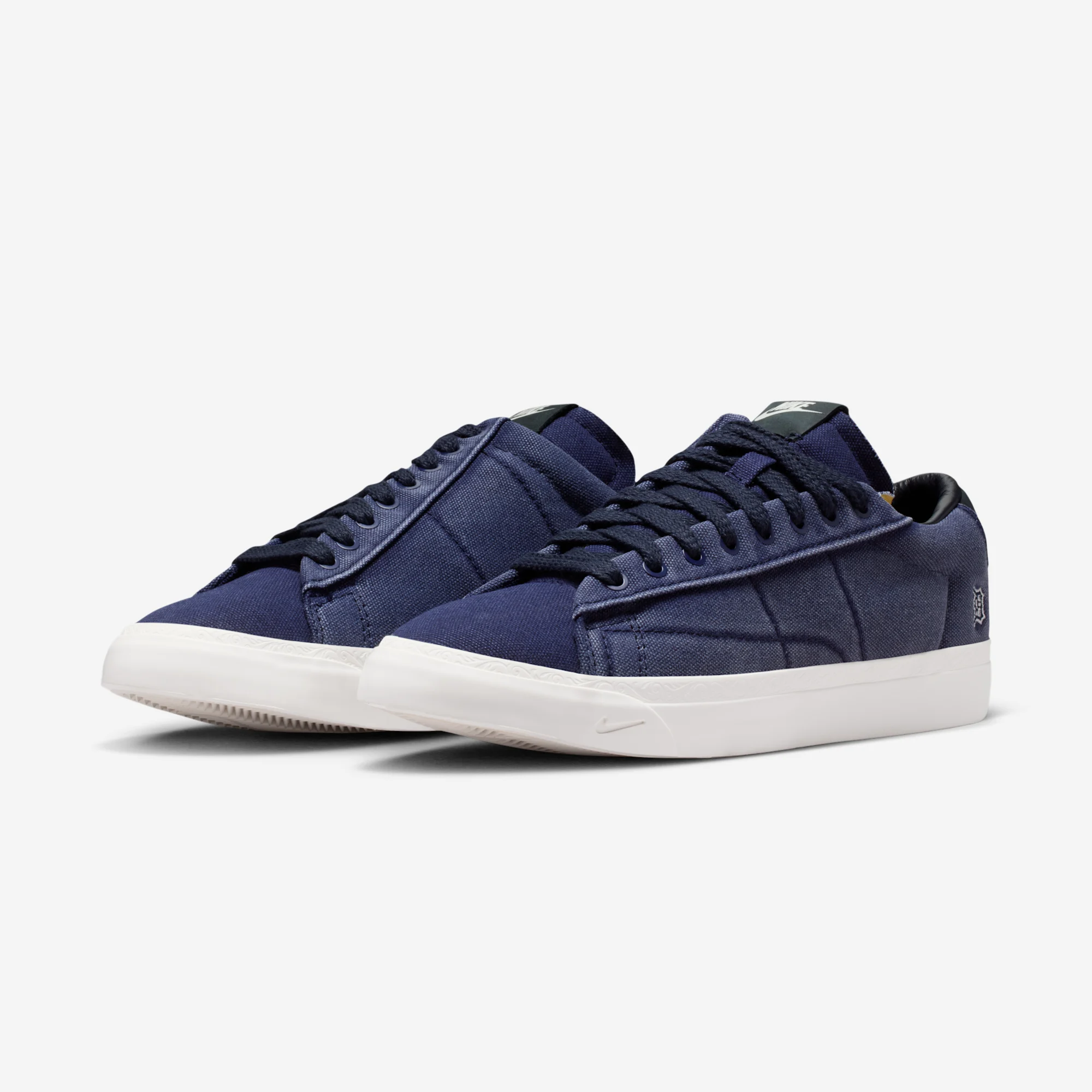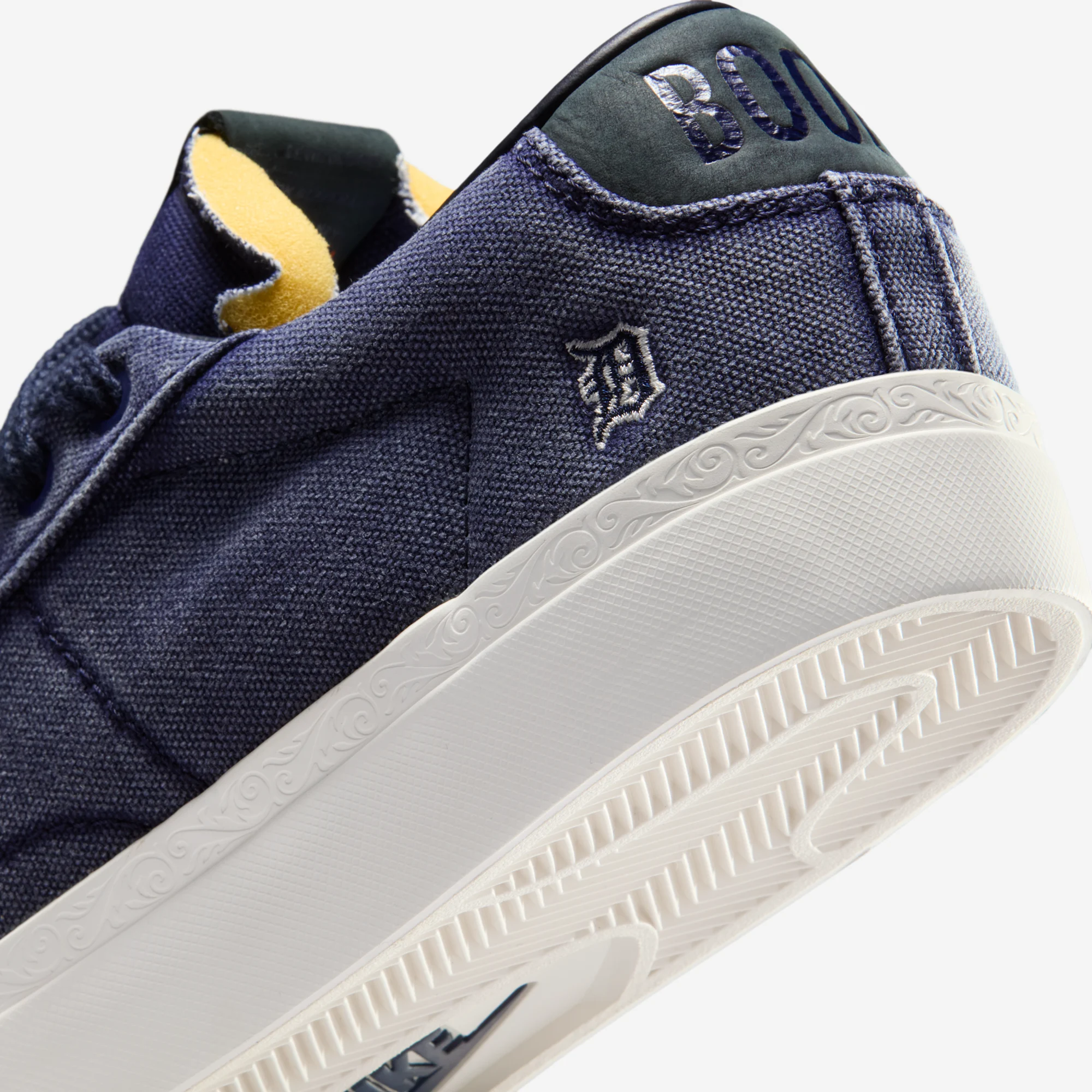 This week, a second lifestyle release from Booker and Nike has surfaced, once again celebrating the young star’s favorite sneaker and car, the Blazer Low. The Blazer also appeared in their Chevy collection, but the new release instead celebrates Booker’s local baseball team, the Detroit Tigers. The project introduces a new version of the Blazer Low, sporting a revised, Swoosh-less construction with asymmetrical lacing systems. Both pairs come in an overdyed canvas construction, offered in tonal Campfire Orange or College Navy. The outer heels feature a Tigers logo patch, while exposed foam tongues and Book branding complete the look.