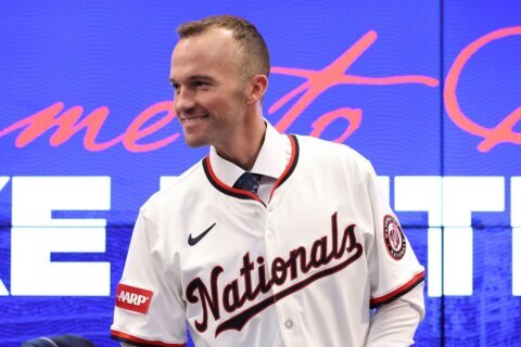 Washington Nationals manager Blake Butera smiles as he introduced during a press conference at Nationals Park on Monday.