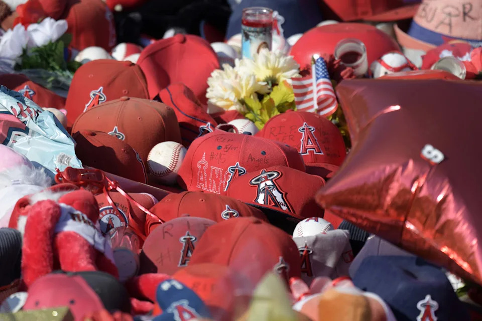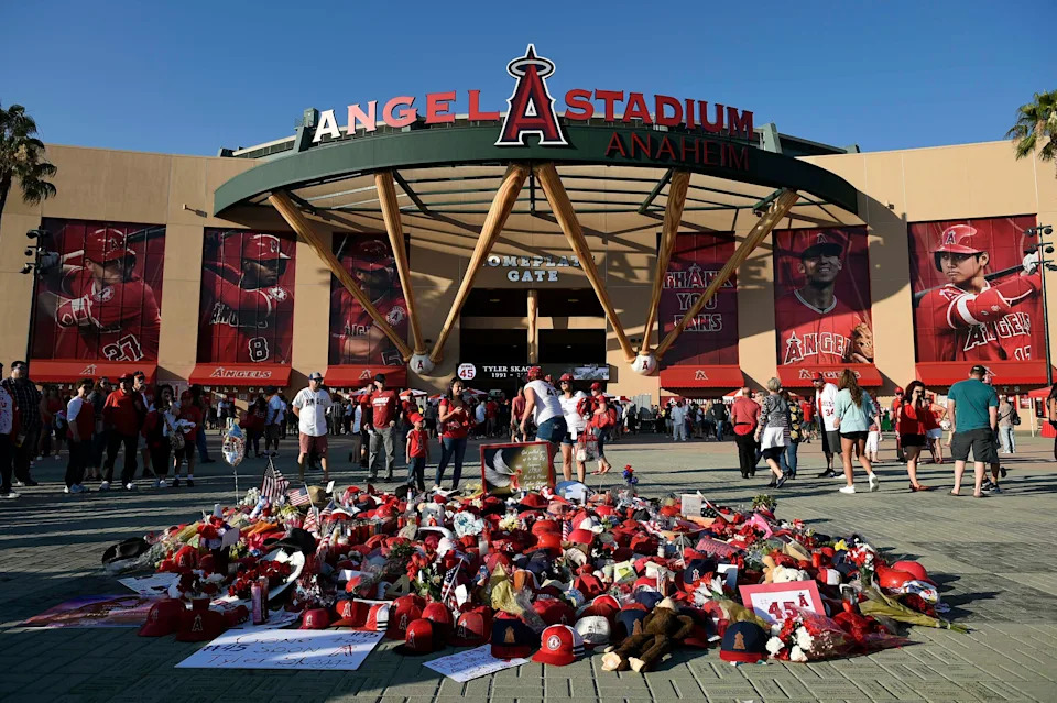A memorial outside Angel Stadium in July 2019.