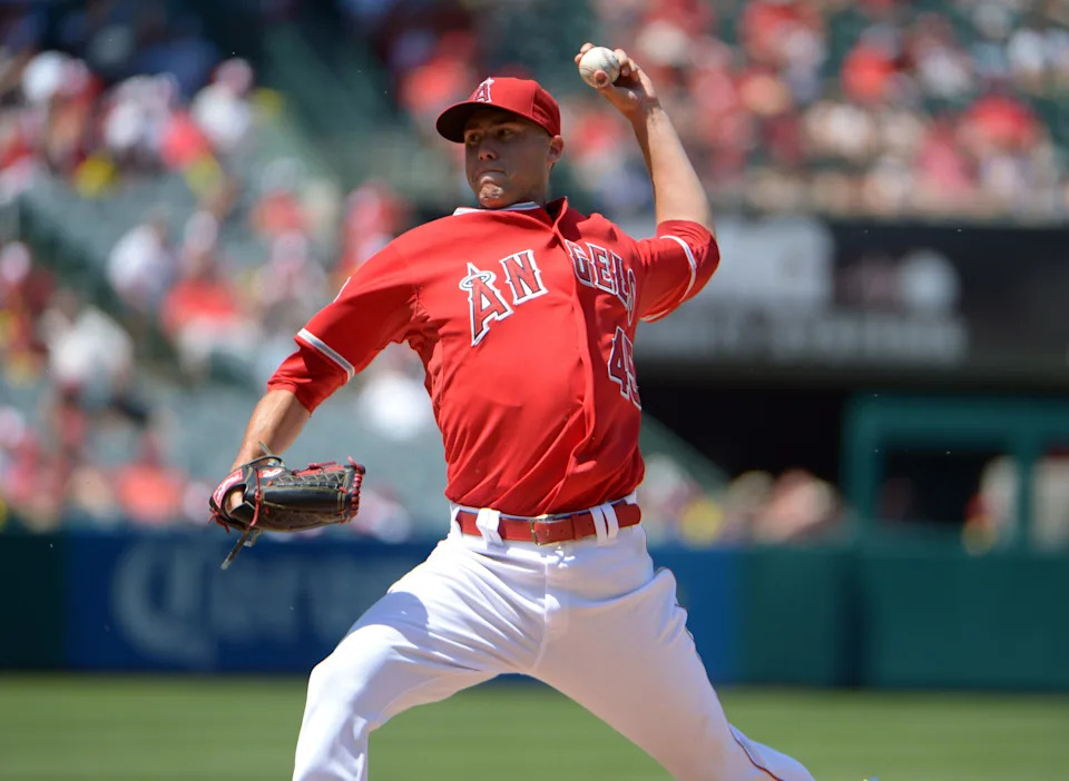 Skaggs pitching against the Mariners in July 2014.