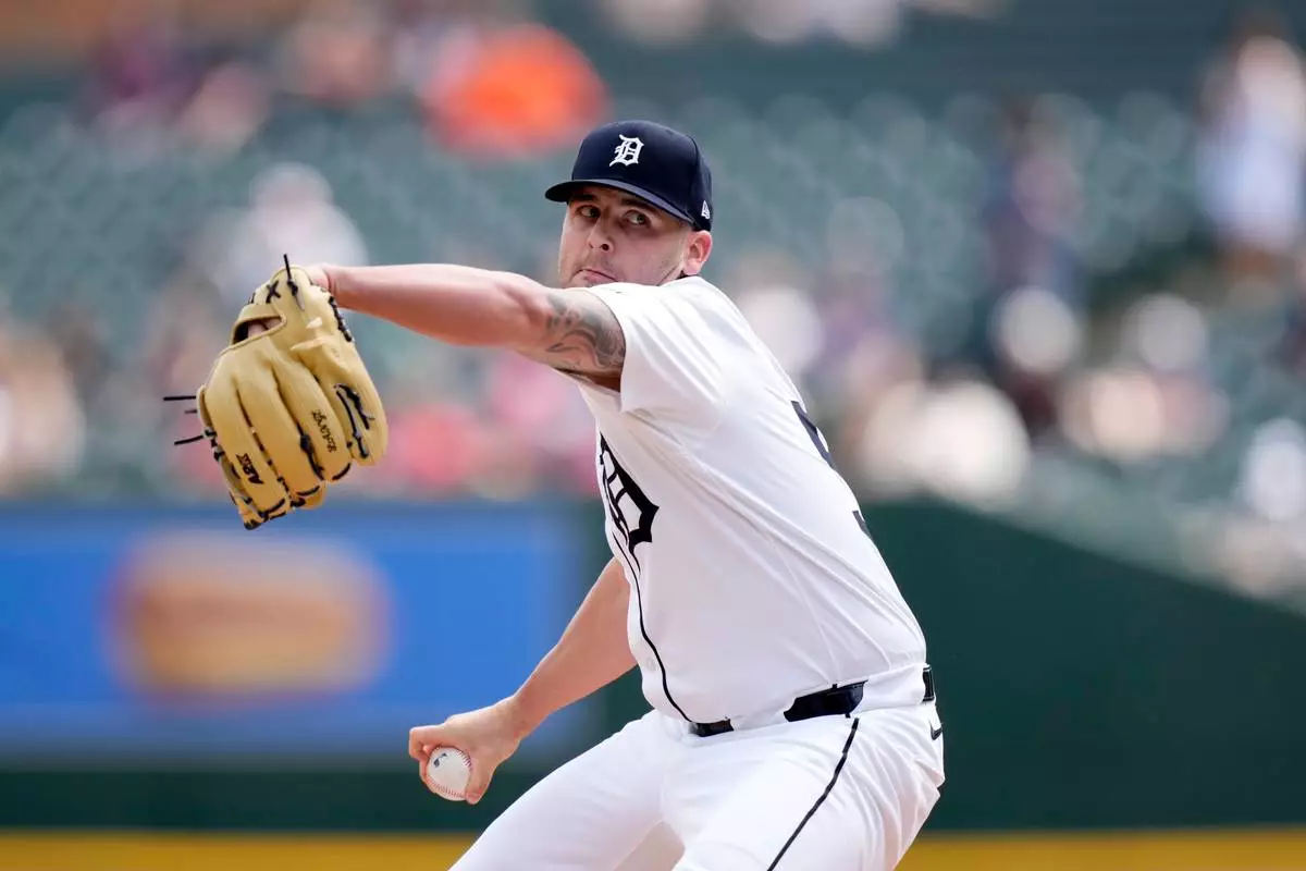FILE – Detroit Tigers pitcher Alex Lange throws during the eighth inning of a baseball game against the St. Louis Cardinals, May 1, 2024, in Detroit. (AP Photo/Carlos Osorio, File)