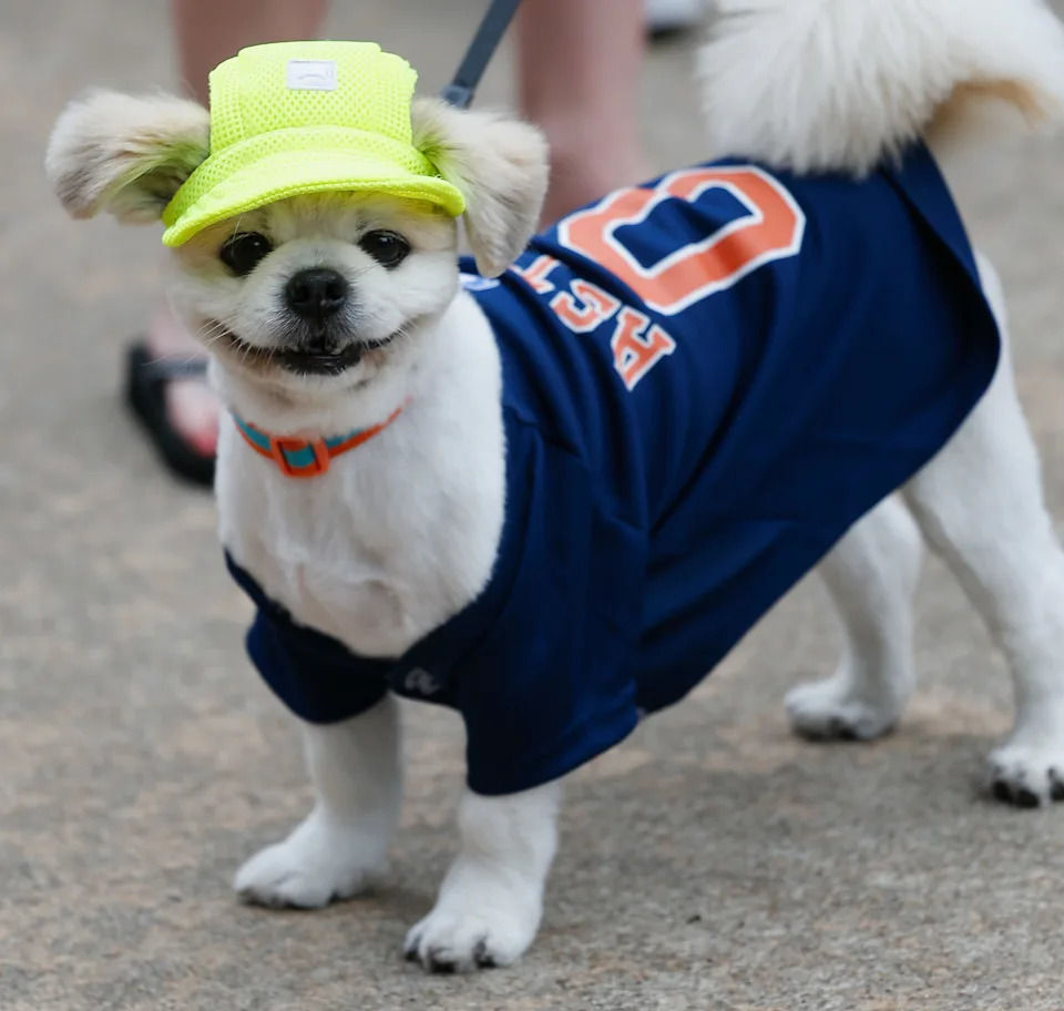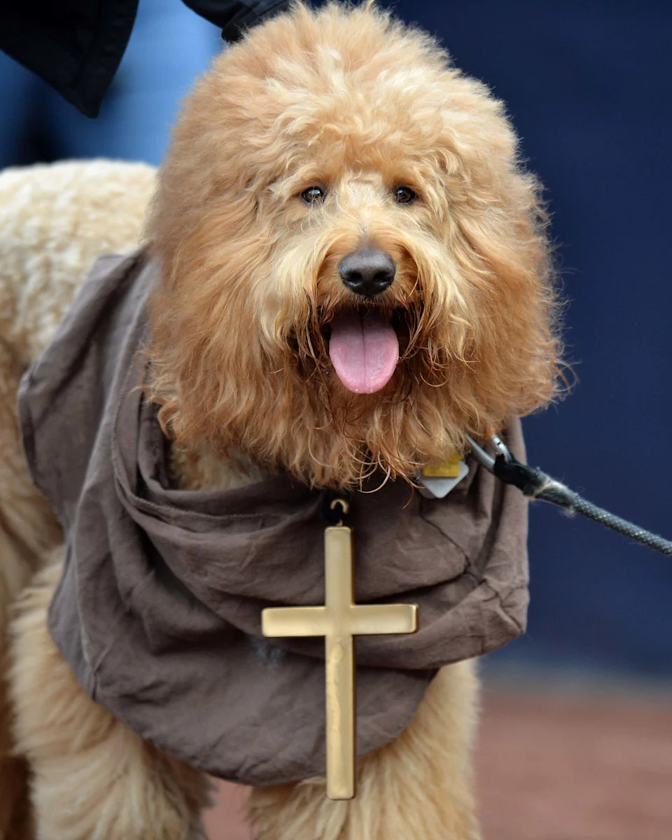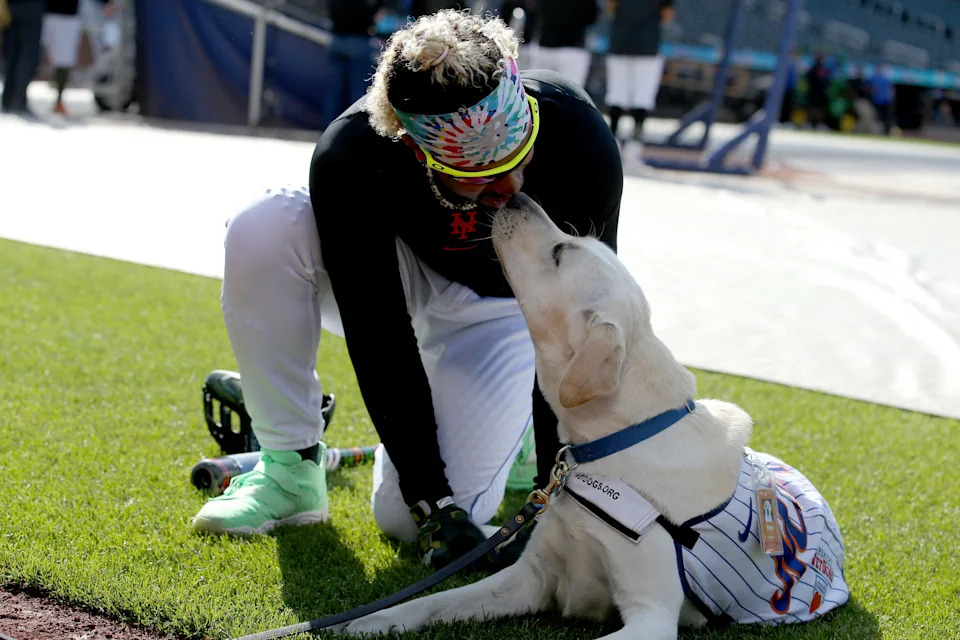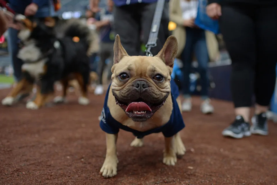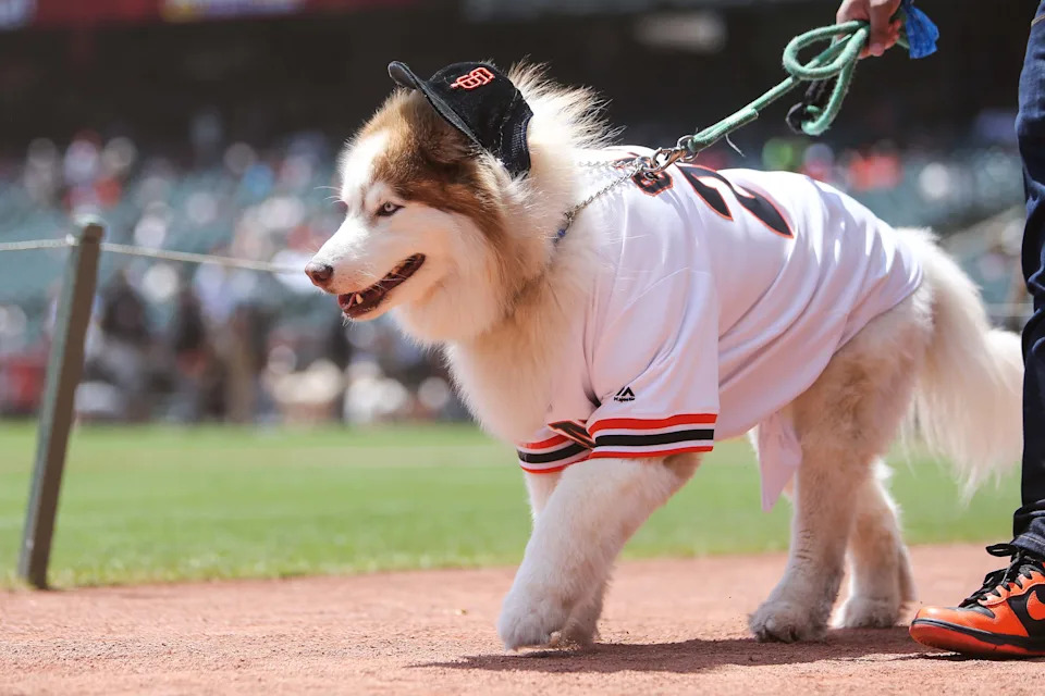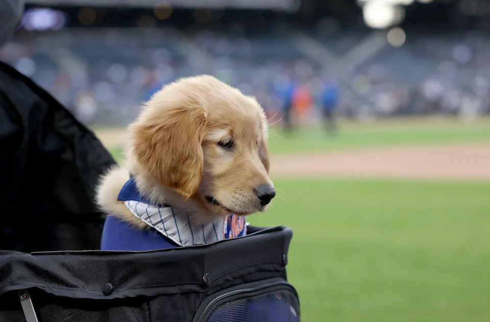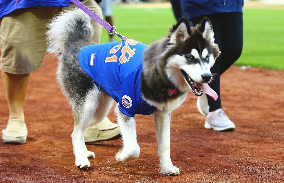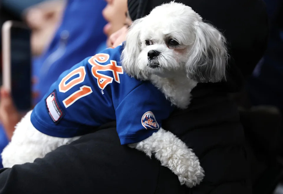 April 6, 2025: A dog is seen at the game between the New York Mets and Toronto Blue Jays at Citi Field.