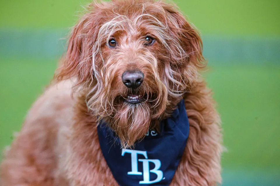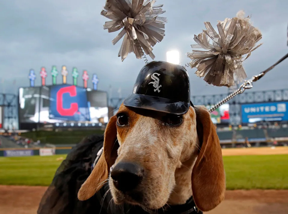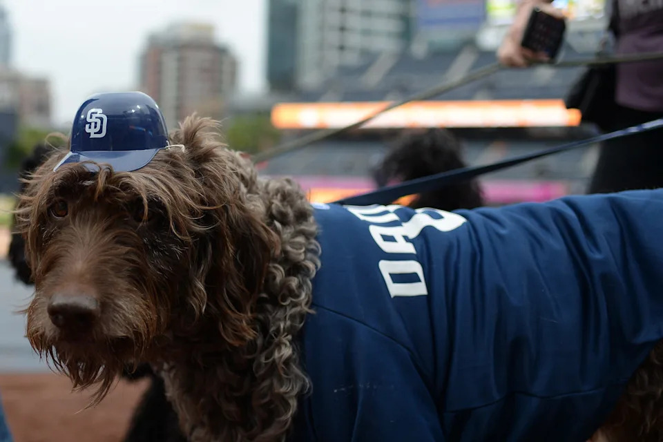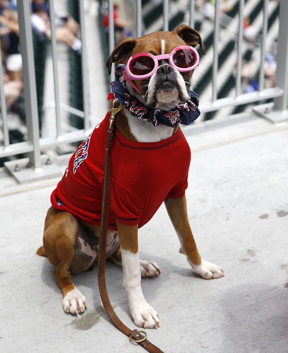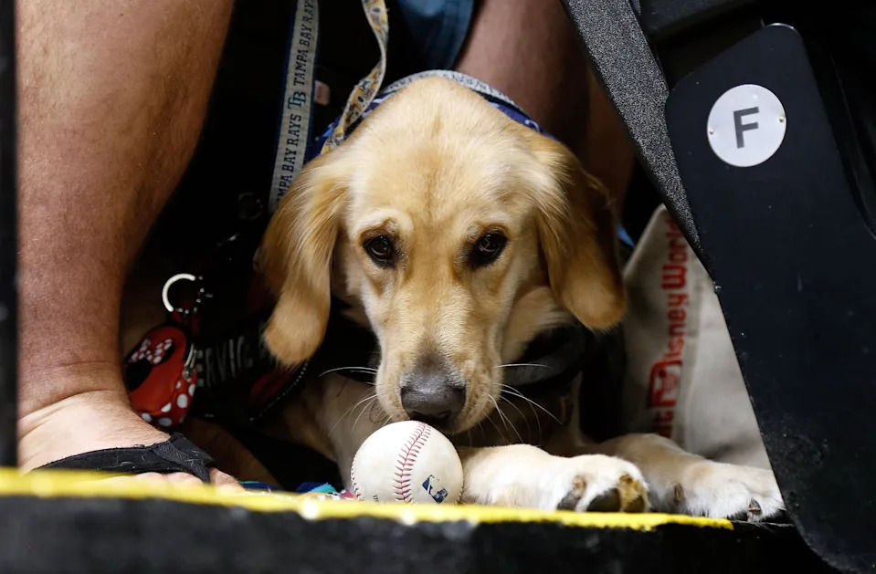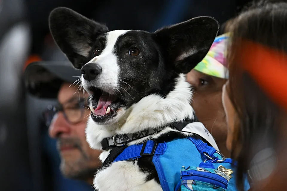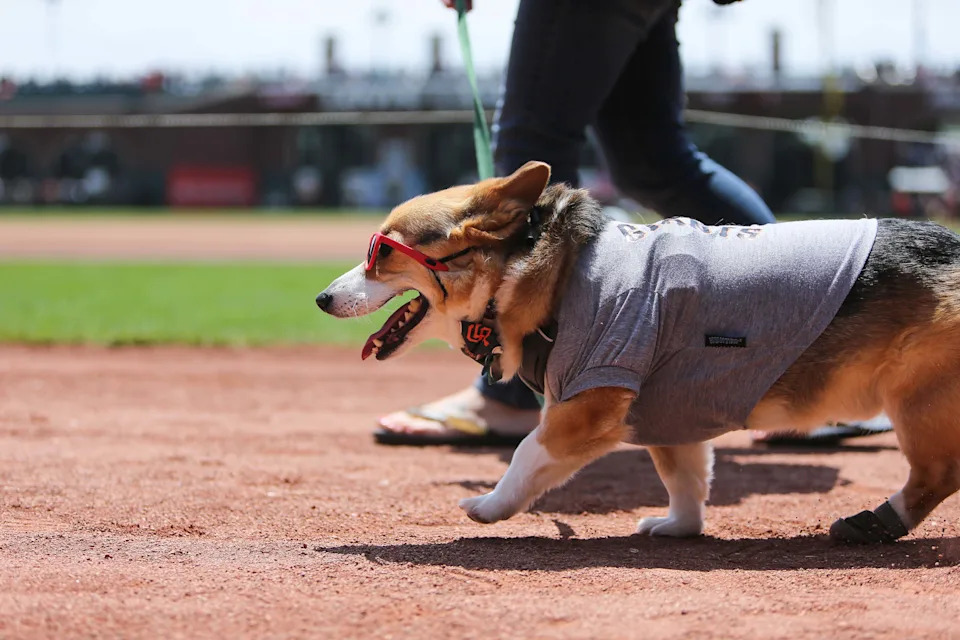 April 6, 2025: A dog is seen at the game between the New York Mets and Toronto Blue Jays at Citi Field.