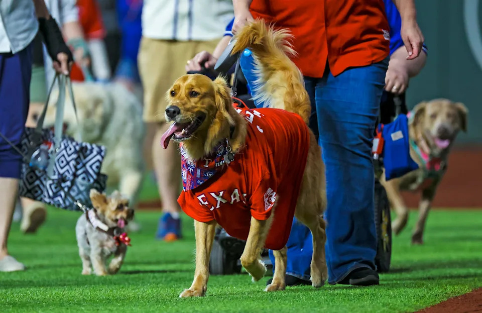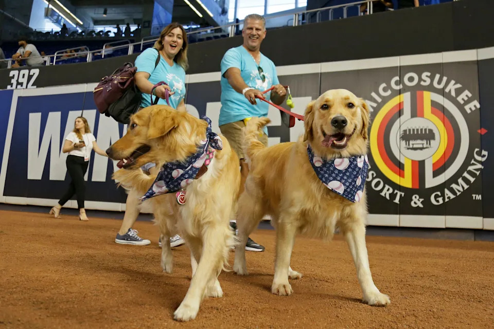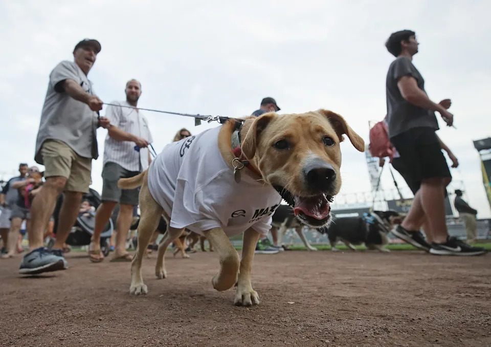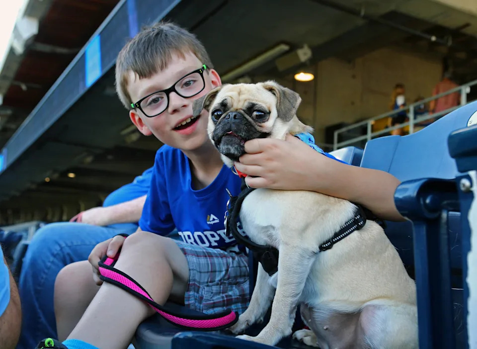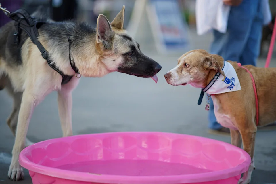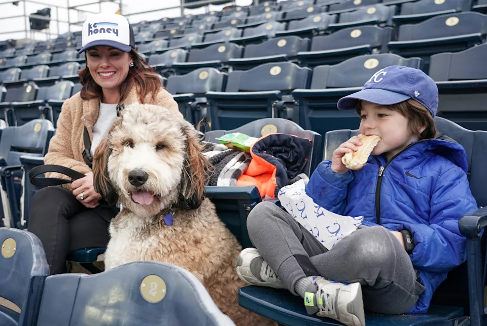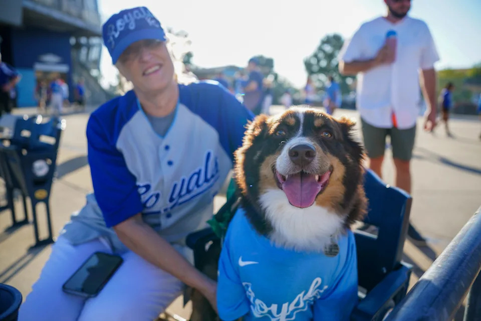 Sept. 3, 2024: Fans bring their dogs during the Bark in the Park night prior to the game between the Kansas City Royals and Cleveland Guardians at Kauffman Stadium.