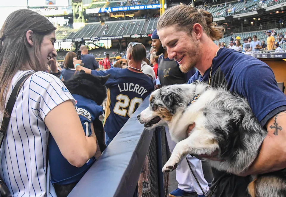 July 16, 2019: Josh Hader shows fans his dog at Miller Park.