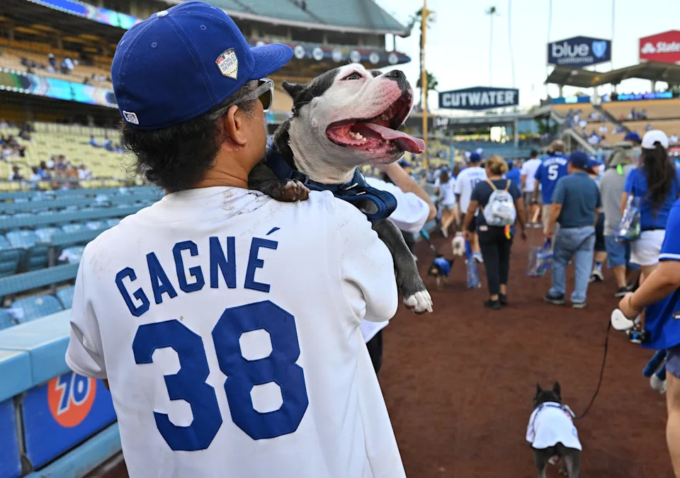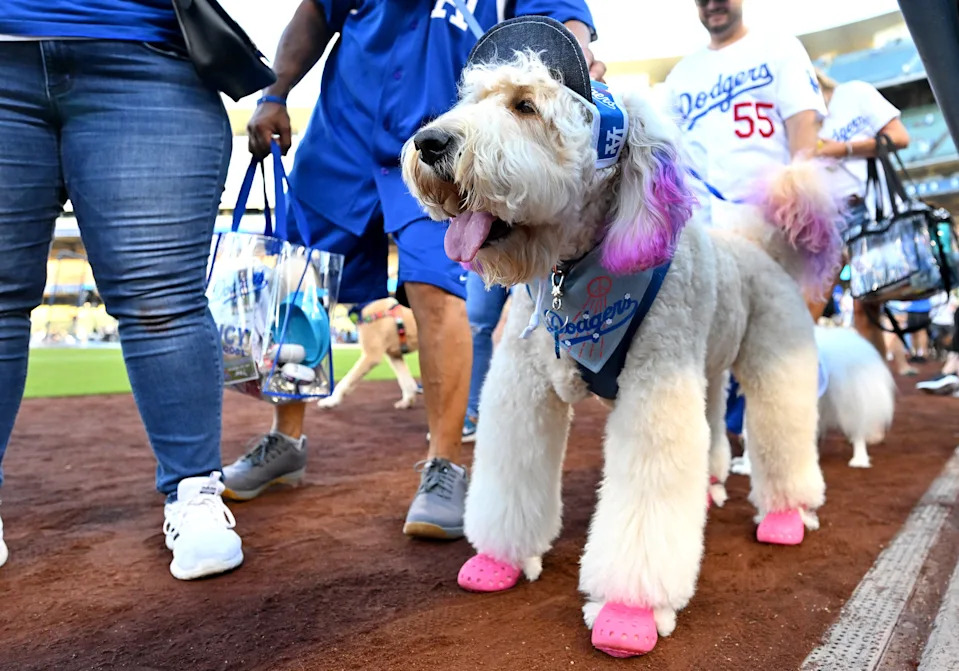 June 2, 2024: Fans and their dogs walk the field during a pup parade during Pups in the Park day prior to the game between the Los Angeles Dodgers and Colorado Rockies at Dodger Stadium.