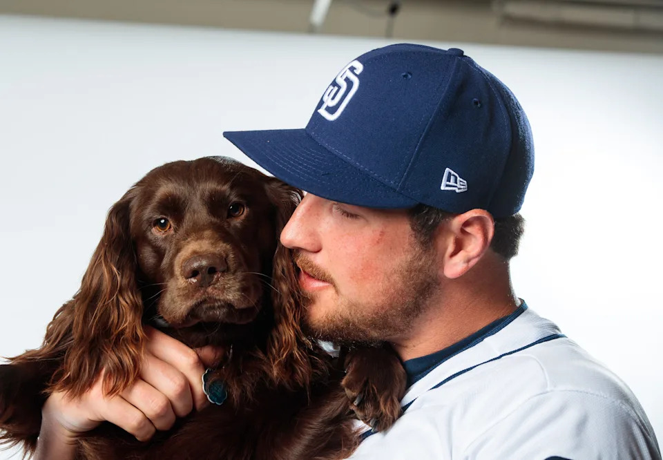 Feb. 21, 2019: Padres outfielder Hunter Renfroe with his dog on media day