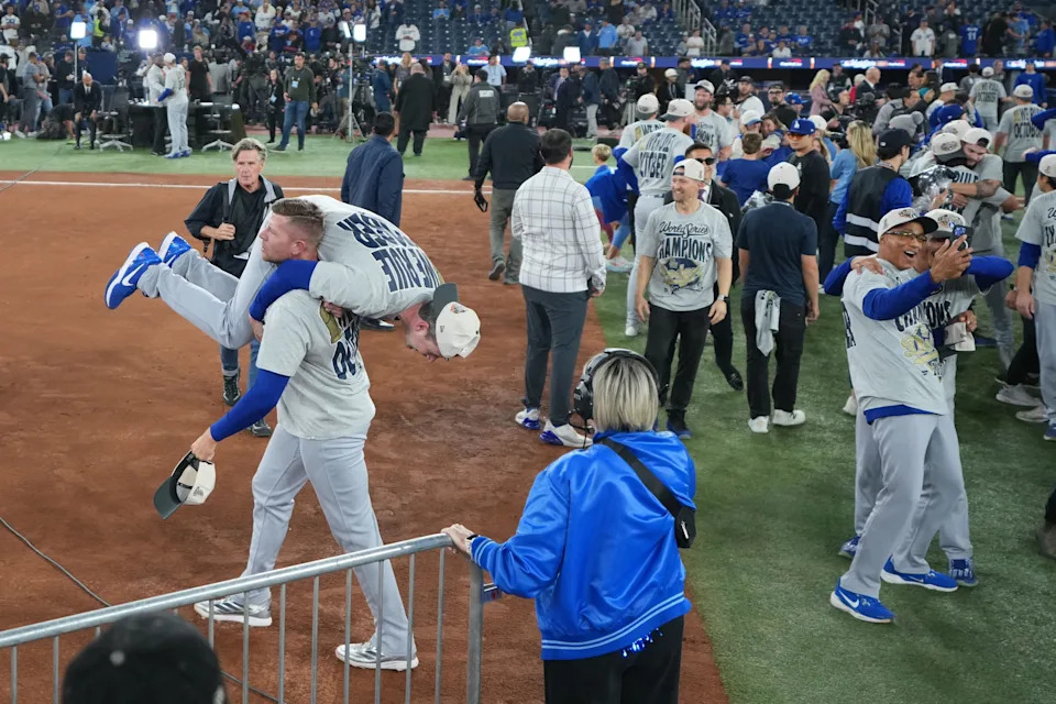 See the Dodgers’ World Series winning moment and champagne-soaked party
