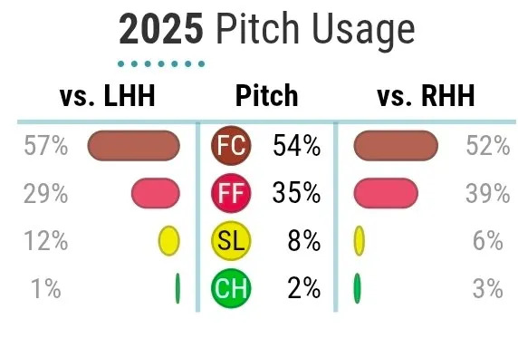 He was “old” when he was drafted, but pitching most of 2026 at 28, Dodd is basically right in the age bracket you’d expect a reliever to be in. And he pitches like Aaron Bummer! The outlook is that I’d expect him to have the inside track as a cheap lefty reliever.