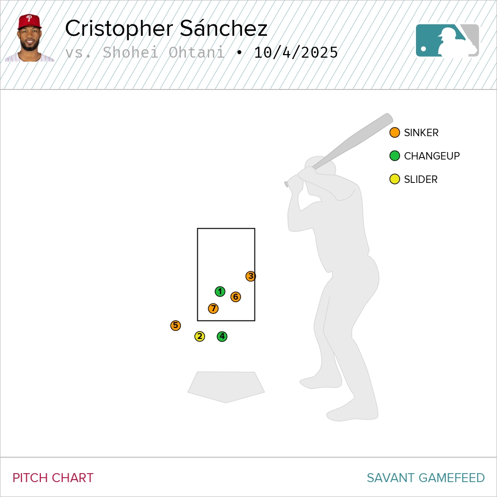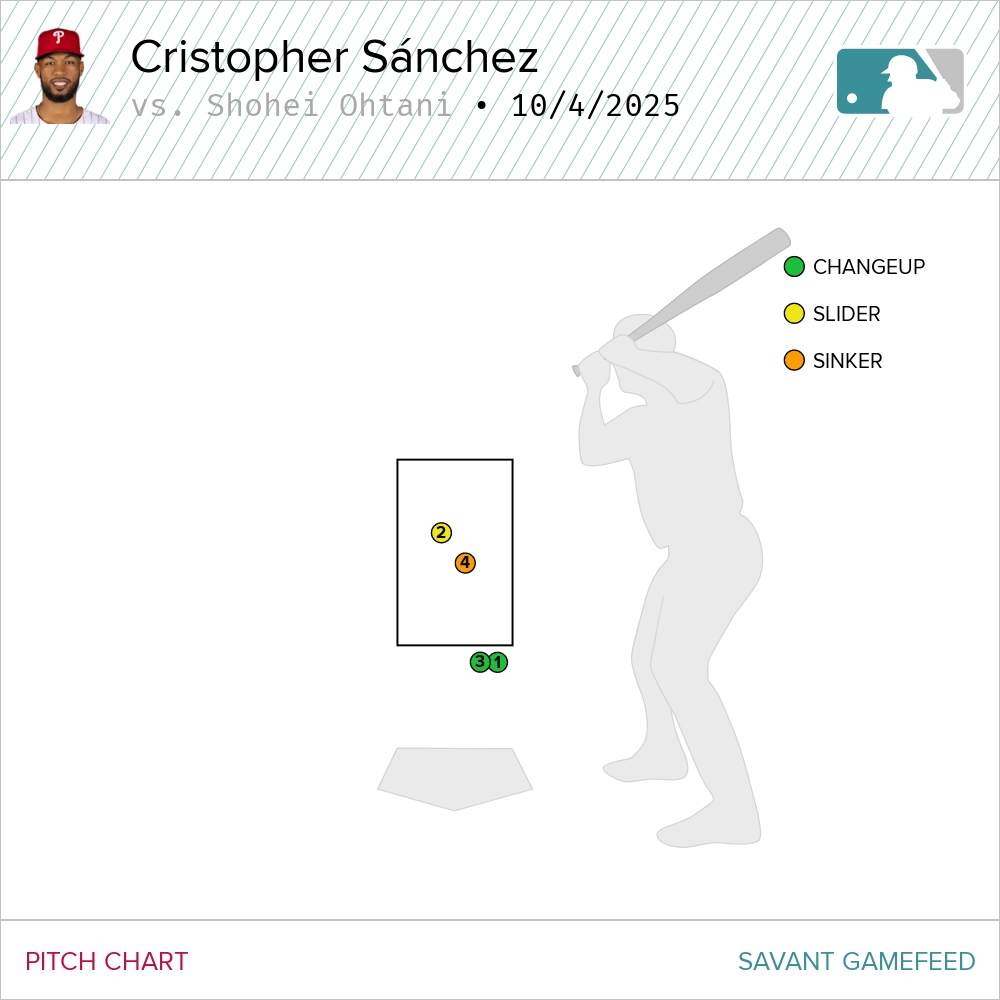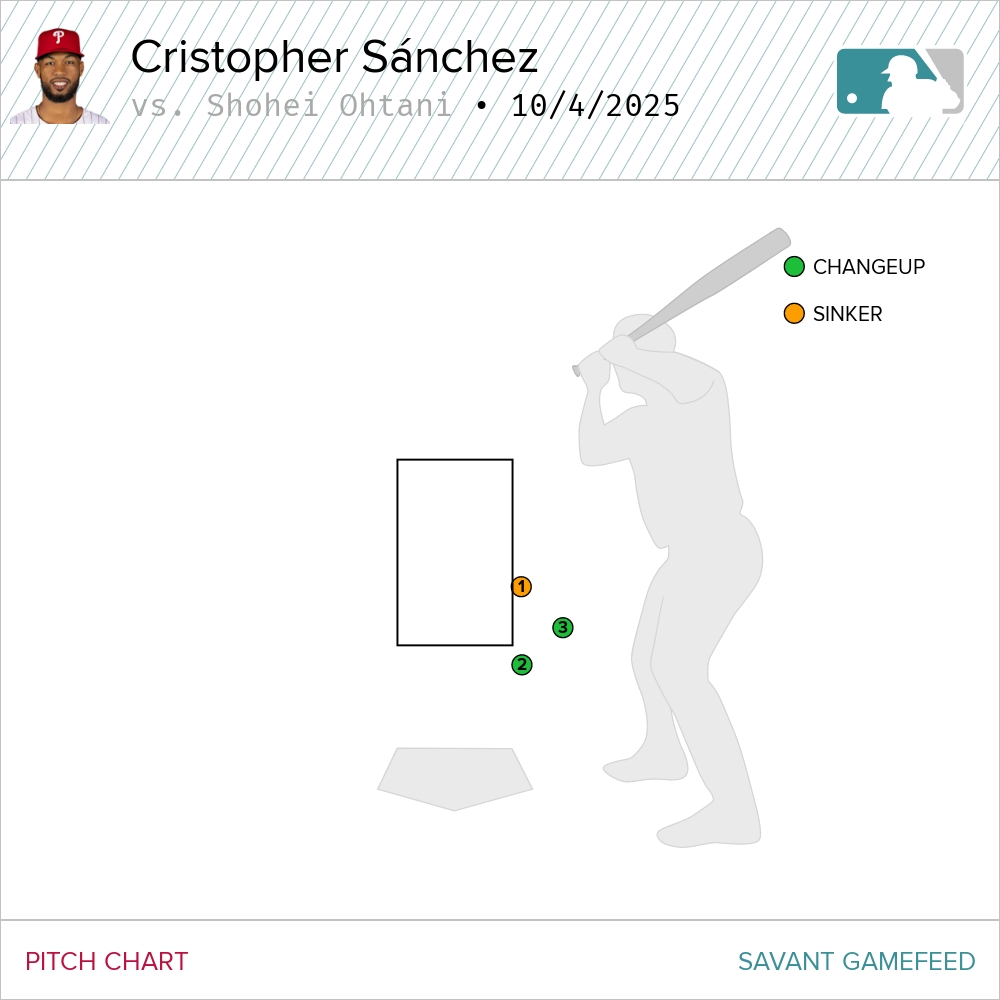 Cristopher Sanchez is a master at the pitch. You can see that by swinging and missing at the first pitch, the sinker, Sanchez now has Ohtani looking in, making him think he’ll try and bust him inside with a fastball. It’s something that didn’t happen much during the regular season.