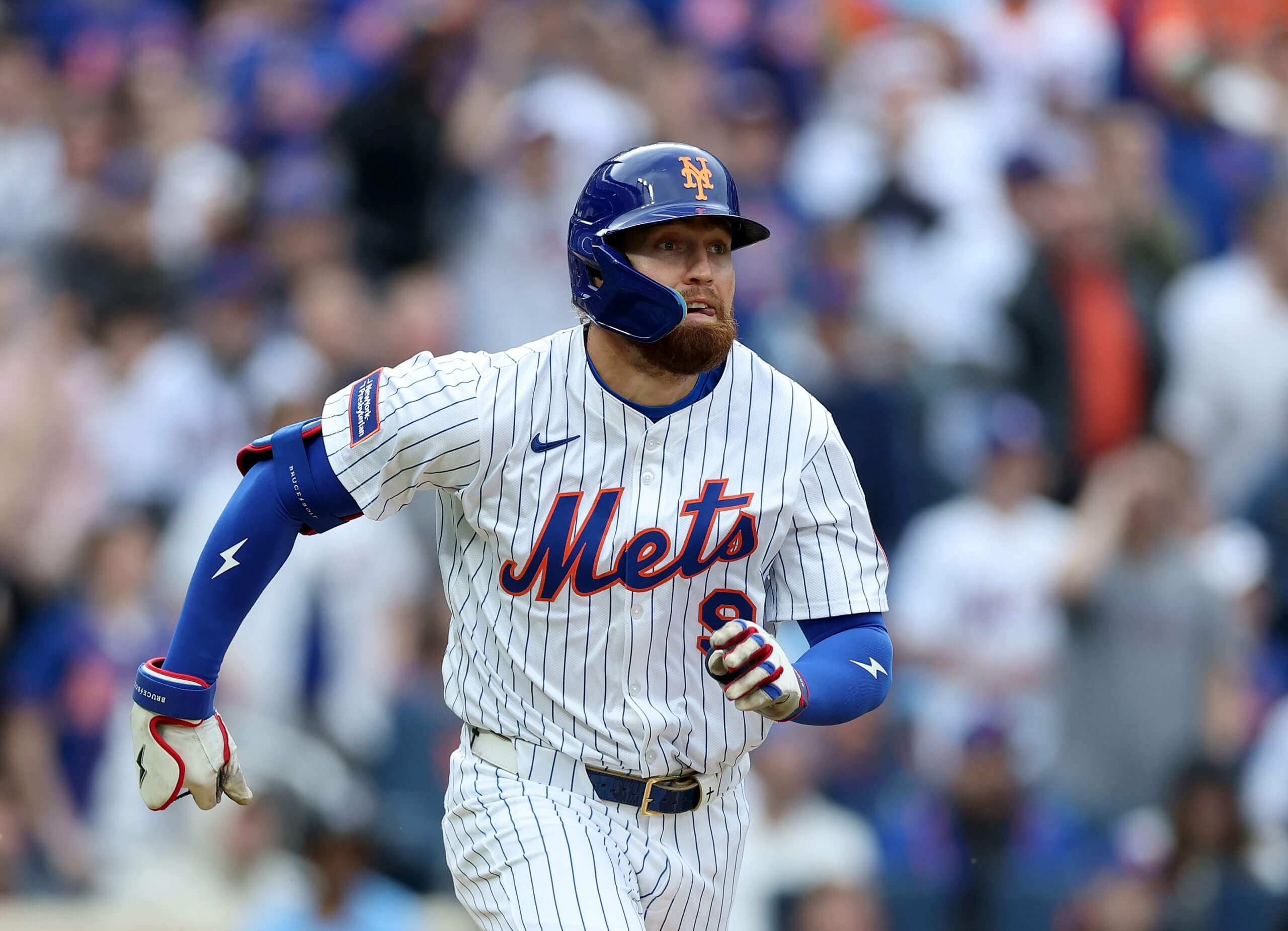 Nimmo has a potent bat. He is also 32 and has five years and $102 million left on his deal. (Elsa / Getty Images)
