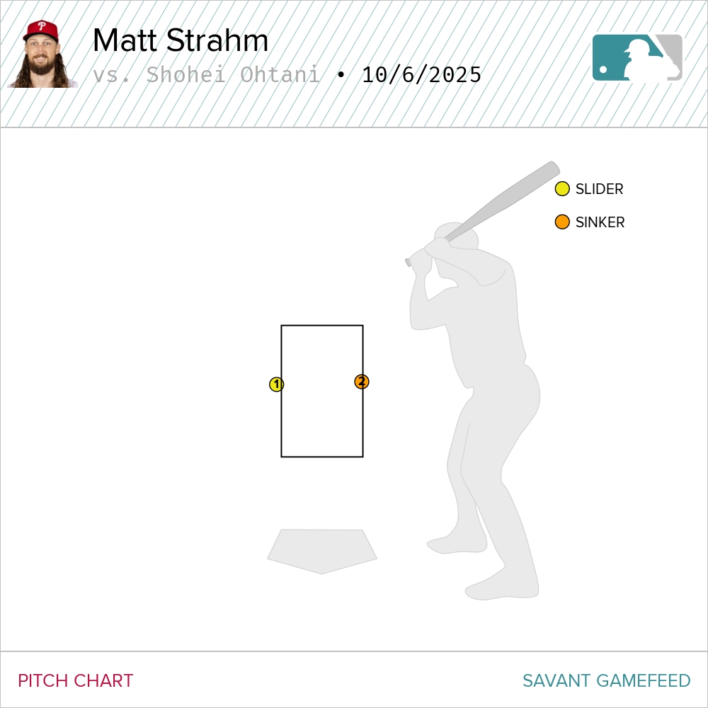 Yesterday, we took an at bat by at bat look at how the Phillies were trying to attack Shohei Ohtani in the NLDS this season. Today, we’ll continue by looking at Game 2 of the matchup, one in which now, Ohtani can focus solely on his hitting. The yoke of his pitching the same game in which he was the designated hitter has been lifted and he can take his time to make sure he is honed in on one thing: hitting the baseball.