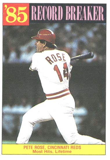 Topps went all in on Rose in ’85 producing 1985 Topps Rose, a 120-card retrospective set of his career. All the big milestones are in the release, taking the collector along the journey.