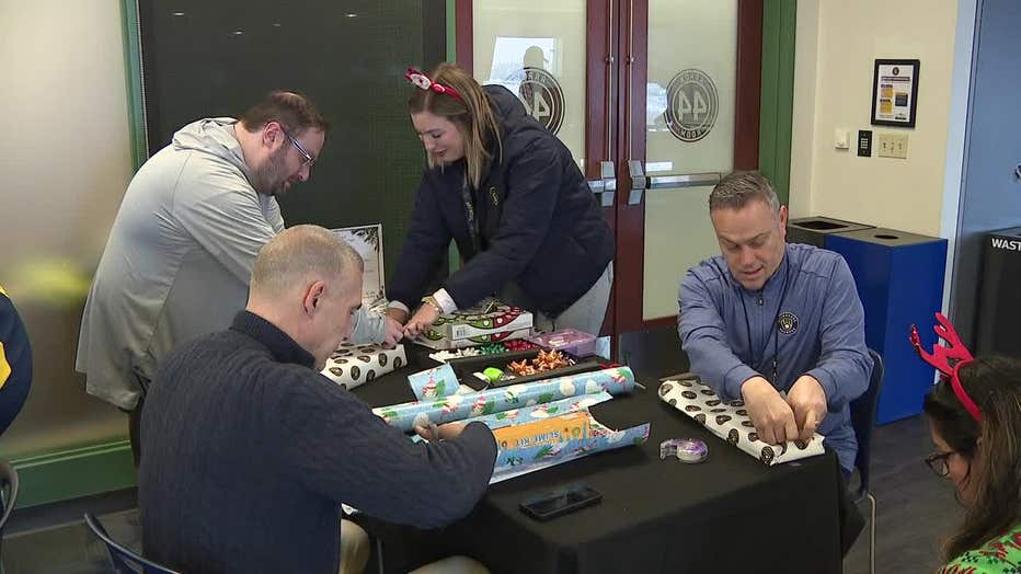 Members of the team’s front office staff also took part in an all-hands-on-deck wrapping day at American Family Field on Wednesday to make sure each gift looked perfect.