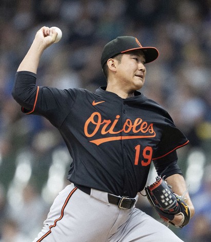 Tomoyuki Sugano of the Baltimore Orioles throws a pitch against the Milwaukee Brewers during a Major League Baseball game at American Family Field in Milwaukee, (Getty/Kyodo)
