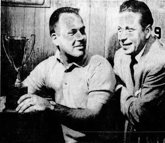 Pleis, left, shows scout Bill Messmann a trophy he won in a golf tournament. Messmann was the scout who signed Pleis to the Minnesota Twins and then helped the pitcher launch his own scouting career. Source: St. Louis Post-Dispatch, February 6, 1966.