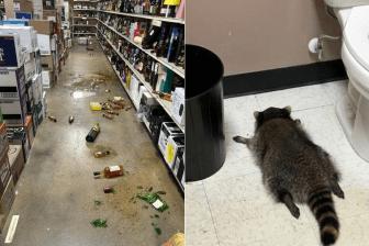 Drunk raccoon found on bathroom floor after liquor store rampage