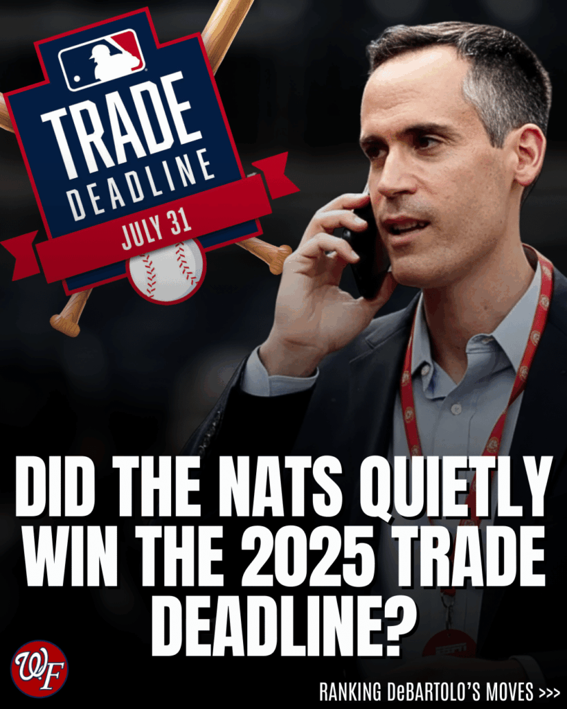Did the Washington Nationals quietly win the 2025 Trade Deadline? Let’s break it down, and begin with some background. During one of the wildest stretches in franchise history, the Washington Rizzo fired GM Mike Rizzo, and replaced him with Mike DeBartolo as the interim GM. The Washington flipped six veterans players of which five were going to be free agents. In return, DeBartolo received back 10 prospects at the trade deadline. Only one has debuted so far, but the rest form one of the deeper prospect returns the Nats have had in years.
