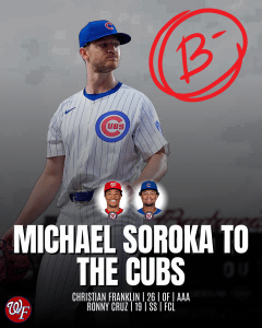Return: Christian Franklin, who forced his way onto the 40-man, and Ronny Cruz, a young raw infielder with upside.