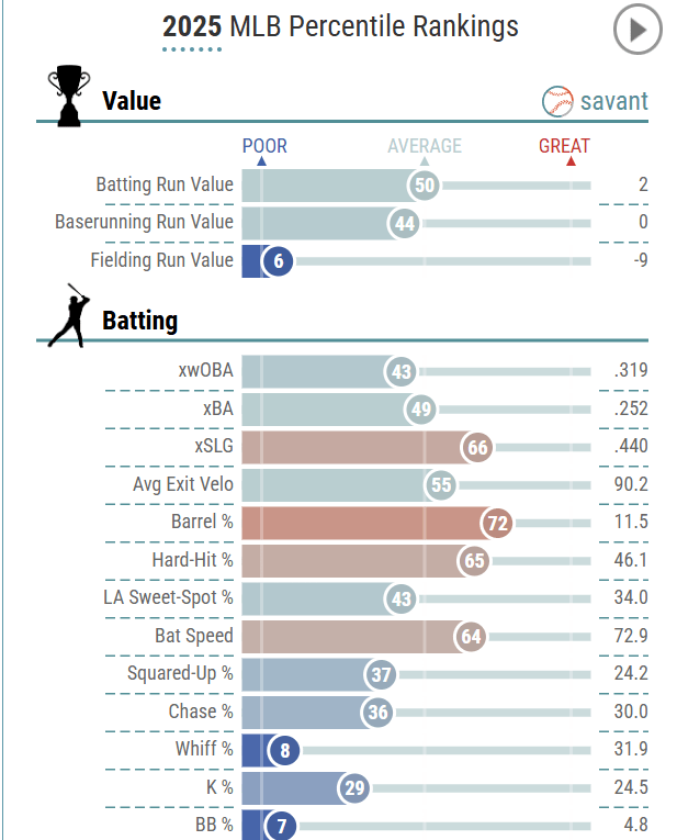 Still, his power is the kind that the Royals covet. He did hit 16 of his 25 home runs at Dodgers Stadium, which has become a bit of a home run park, but he would have had 21 expected home runs had he played all of his games at Kauffman Stadium. He missed time this year with a groin injury and had some foot issues, and he is skipping the World Baseball Classic next spring to give his body more time to recover. His numbers slumped after his early groin injury as he began to chase more. He has been pretty durable in his career, appearing in 130 games or more in six of his last seven non-shortened seasons. He is regarded as a good clubhouse, a guy who values winning, and has won two championship rings.