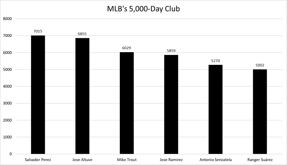 A handful of teams only have two 3,000-Day Club members. But Trout and Adell are the only two Angels who are even in the 2,500-Day Club. This team is so long-tenure-averse that literally Anthony Rendon is one of the longest-tenured Angels.