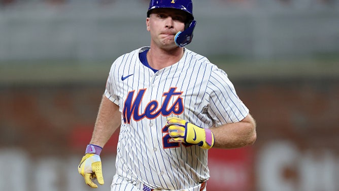 Pete Alonso of the New York Mets runs around the bases after hitting a three-run home run against the American League during the sixth inning of the MLB All-Star Game at Truist Park on July 15, 2025 in Atlanta, Georgia. (Photo by Kevin C. Cox/Getty Images)